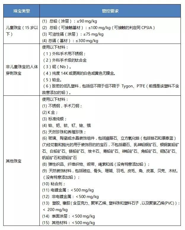 将儿童珠宝中总铅的限值和CPSIA保持一致,并增加儿童珠宝涂层中的可溶性镉要求;