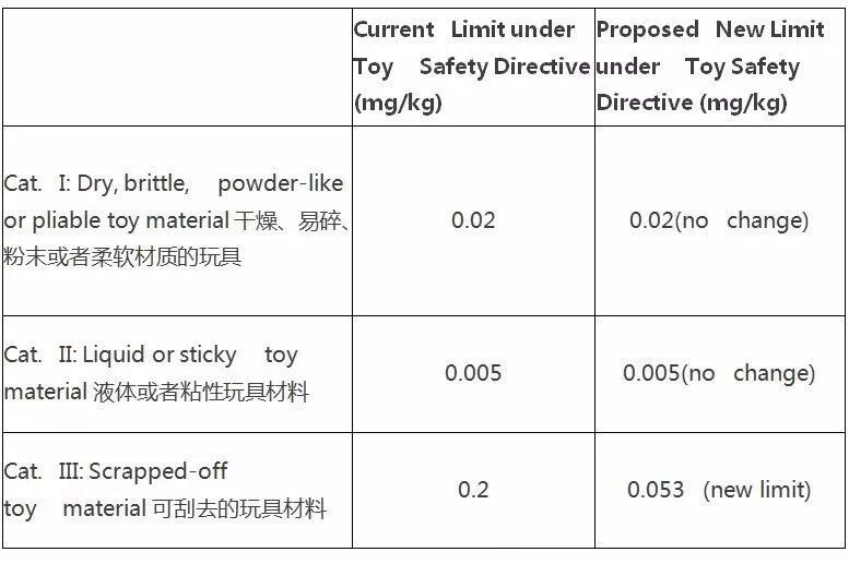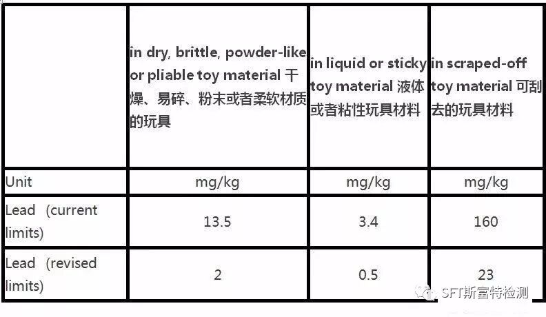 2、欧盟玩具安全指令更新铅迁移限量要求将于2018年10月28日生效。